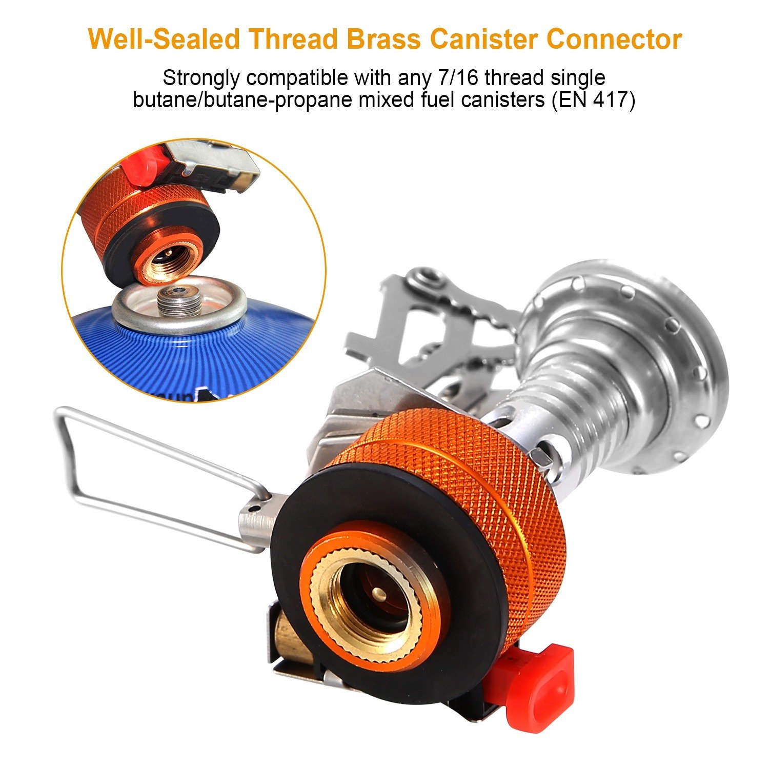 **STRONG FUEL CANISTER COMPATIBILITY*:Coming with a well-sealed thread brass canister connector to connect any 7/16 thread single butane/butane-propane mixed fuel canisters(EN 417).